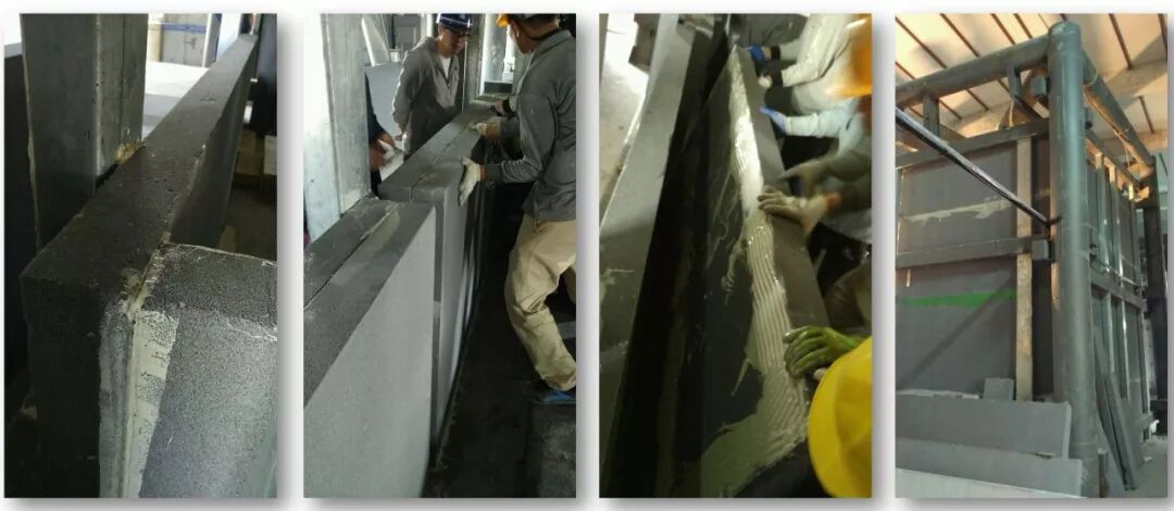 在墙板的安装使用中,共三层板采用迷宫式缝隙,墙板厚34cm,两边分别是10cm厚200密度的保温板,中间则是10cm厚400密度的保温板,连接处采用4cm厚的聚氨酯发泡胶进行拼装。主要适用在内隔墙、商铺隔断、屋顶贴面隔热保温,产品规格多样化,4cm~10cm厚运用在各个区域,高效保温,隔热稳定。